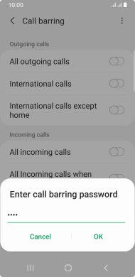 Key in your barring password and press OK. The default barring password is 0000.