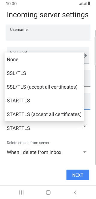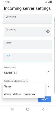 Press the field below "Server" and key in the name of your email provider's incoming server.