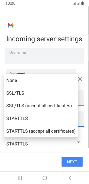 Press the field below "Username" and key in the username for your email account.