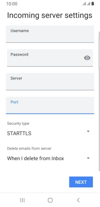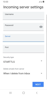 Press the field below "Server" and key in the name of your email provider's incoming server.