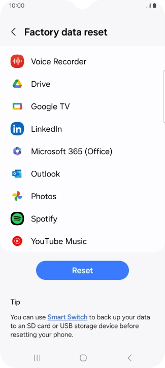 Press Factory data reset.
