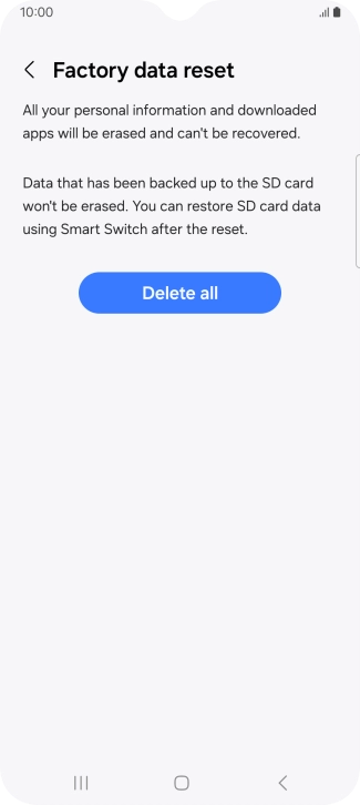 Press Delete all. Wait a moment while the factory default settings are restored. Follow the instructions on the screen to set up your phone and prepare it for use.