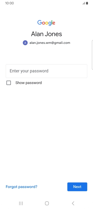 Press the field below "Enter your password" and key in the password for your Google account.