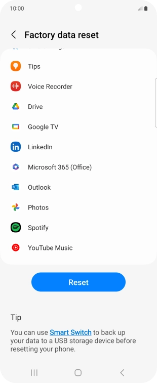 Press Factory data reset.