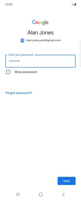 If you don't have a Google account, press Create account and follow the instructions on the screen to create an account.