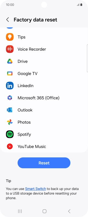 Press Factory data reset.