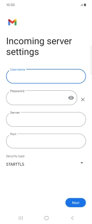 Press the field below "Server" and key in the name of your email provider's incoming server.