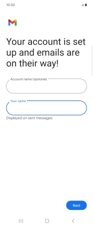 If this screen is displayed, you email account has been recognised and set up automatically. Follow the instructions on the screen to key in more information and finish setting up your phone.