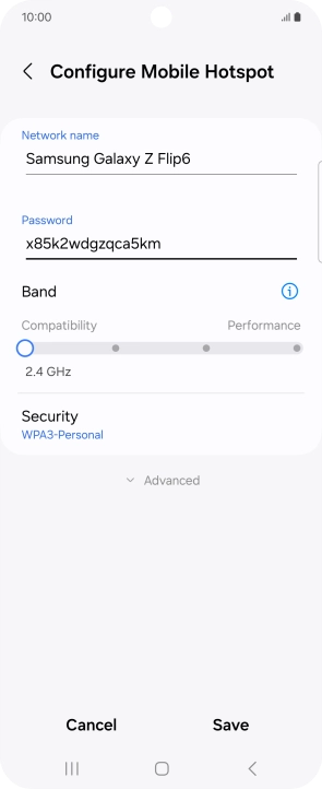 Press WPA3-Personal to password protect your Wi-Fi hotspot.