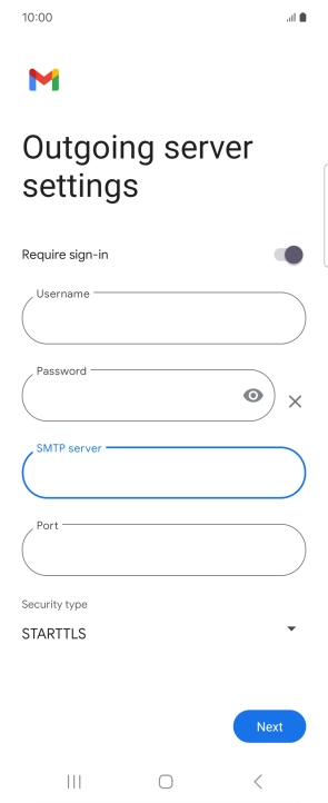 Press the field below "SMTP server" and key in the name of your email provider's outgoing server.
