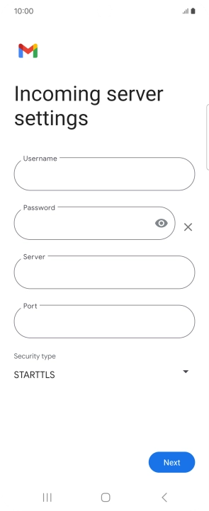 Press the field below "Server" and key in the name of your email provider's incoming server.