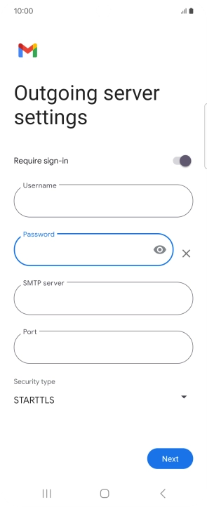Press the field below "Password" and key in the password for your email provider's outgoing server.