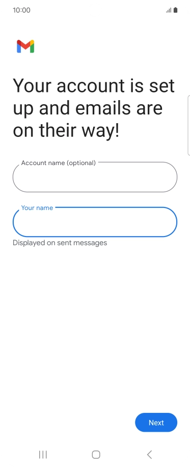 If this screen is displayed, you email account has been recognised and set up automatically. Follow the instructions on the screen to key in more information and finish setting up your phone.