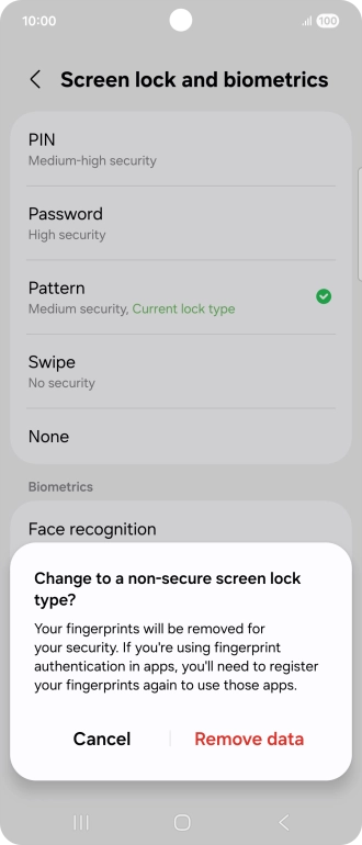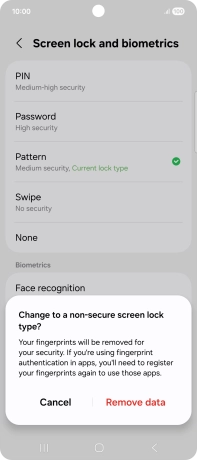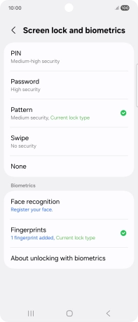 Press Screen lock and biometrics and key in the additional phone lock code you created earlier.