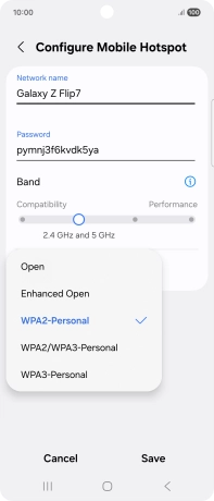 Press WPA3-Personal to password protect your Wi-Fi hotspot.