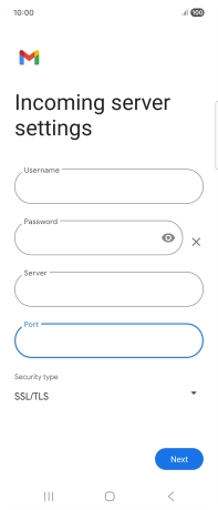 Press the field below "Server" and key in the name of your email provider's incoming server.