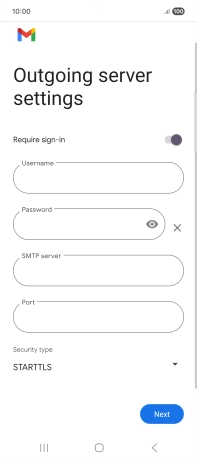 Press the field below "Username" and key in the username for your email the email provider's outgoing server.