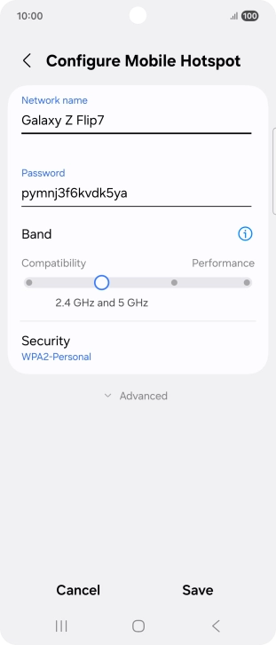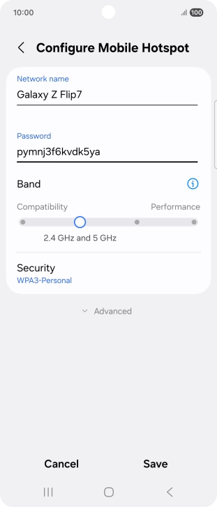 Press WPA3-Personal to password protect your Wi-Fi hotspot.
