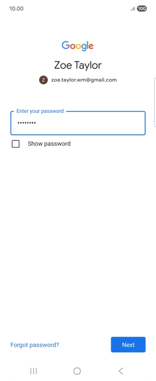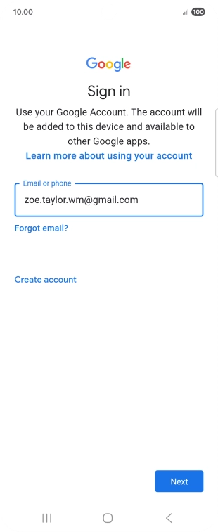 If you don't have a Google account, press Create account and follow the instructions on the screen to create an account.