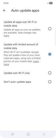 To turn on limited update of apps using mobile network, press Update with limited amount of mobile data.