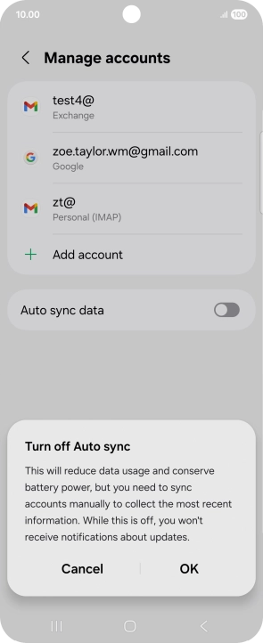 Press the indicator next to "Auto sync data" to turn the function on or off.