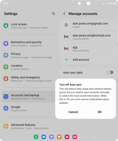 Press the indicator next to "Auto sync data" to turn the function on or off.