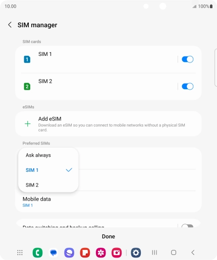 When you insert two SIMs into your phone, you can make calls and send and receive messages from both SIMs. You can also select a default SIM for mobile data usage.