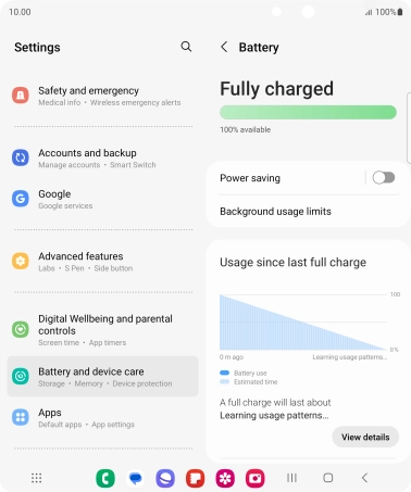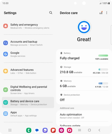 Press Battery and device care.