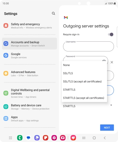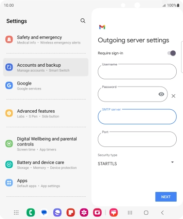 Press the field below "Username" and key in the username for your email the email provider's outgoing server.