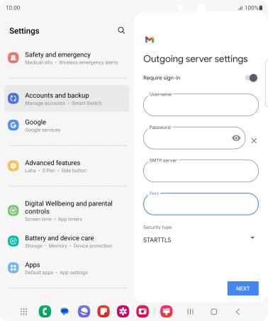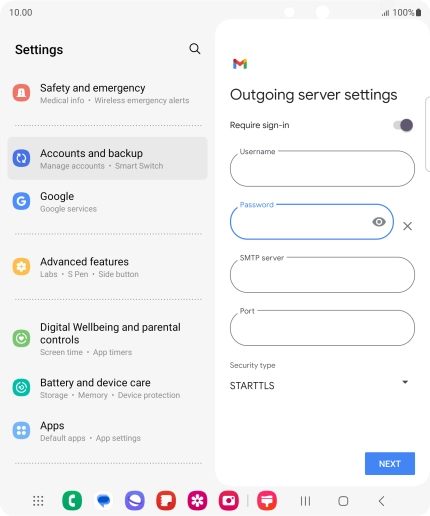 Press the field below "Password" and key in the password for your email provider's outgoing server.