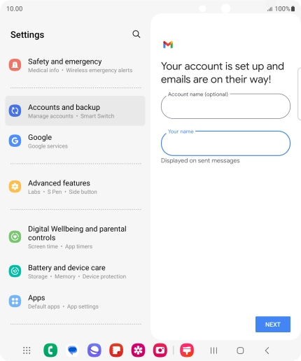 If this screen is displayed, you email account has been recognised and set up automatically. Follow the instructions on the screen to key in more information and finish setting up your phone.