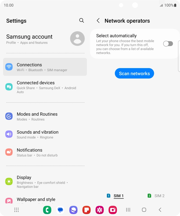 Press the indicator next to "Select automatically" to turn off the function and wait while your phone searches for networks.