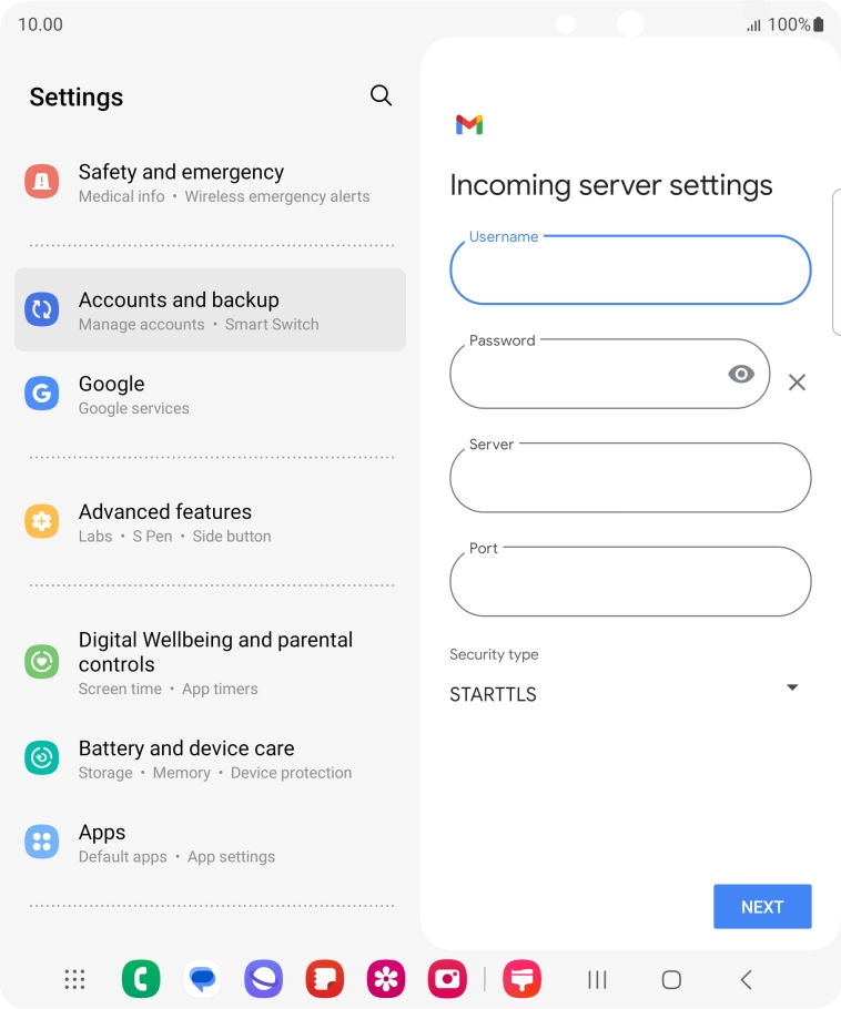 Press the field below "Server" and key in the name of your email provider's incoming server.