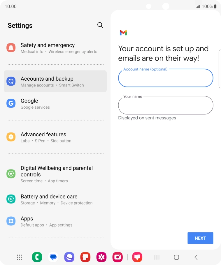 If this screen is displayed, you email account has been recognised and set up automatically. Follow the instructions on the screen to key in more information and finish setting up your phone.
