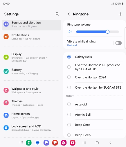 To use a different ring tone than the default ones, press the add ring tone icon and follow the instructions on the screen to select the required ring tone.