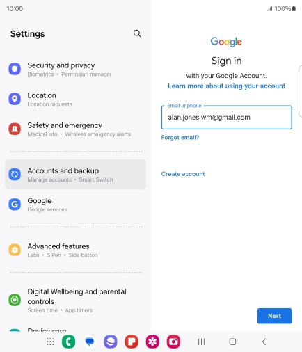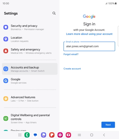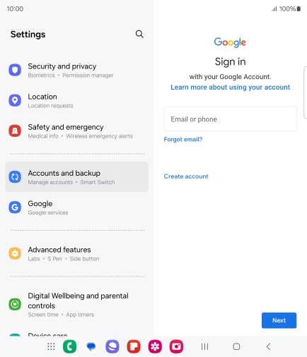 If you don't have a Google account, press Create account and follow the instructions on the screen to create an account.
