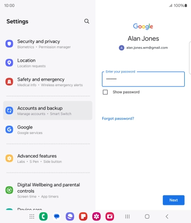 Press the field below "Enter your password" and key in the password for your Google account.