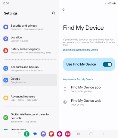 Press the indicator next to "Use Find My Device" to turn on the function.