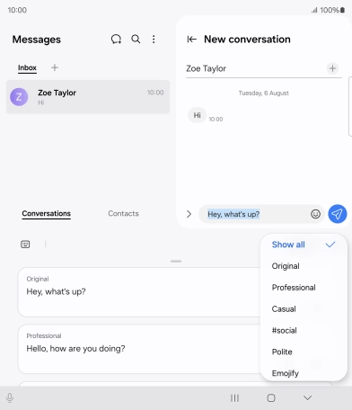 Galaxy AI allows you to use many of your phone's functions in a smarter and more efficient way. Here you can see some examples of Galaxy AI usage. To use most of the Galaxy AI functions, you need to activate your Samsung account on your phone and set up your phone for internet.