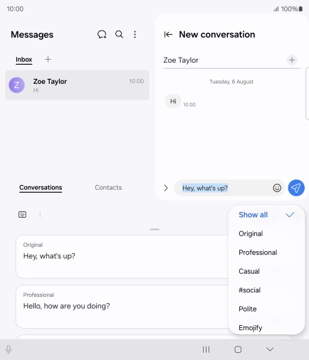 Open a supported app, e.g. Messages.