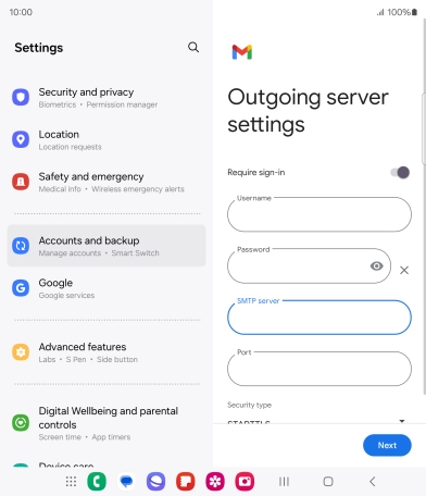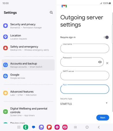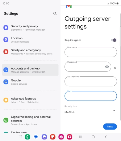 Press the field below "Username" and key in the username for your email the email provider's outgoing server.