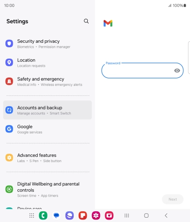 Press the field below "Password" and key in the password for your email account.