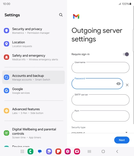 Press the field below "Password" and key in the password for your email provider's outgoing server.