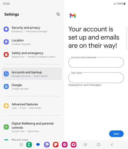 Press the field below "Account name (optional)" and key in the required name.