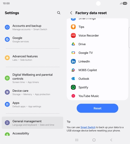 Press Factory data reset.