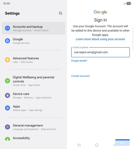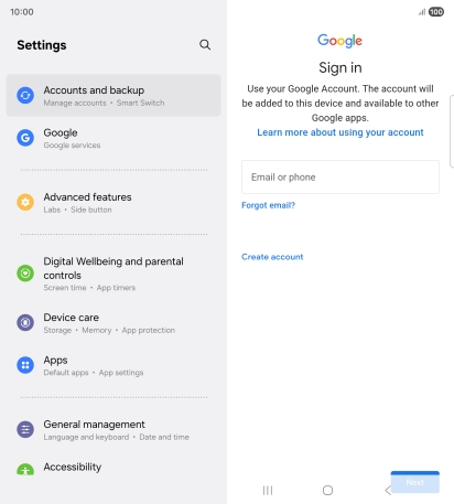 If you don't have a Google account, press Create account and follow the instructions on the screen to create an account.