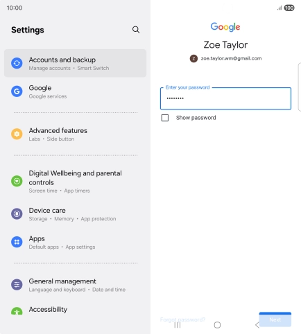 Press the field below "Enter your password" and key in the password for your Google account.
