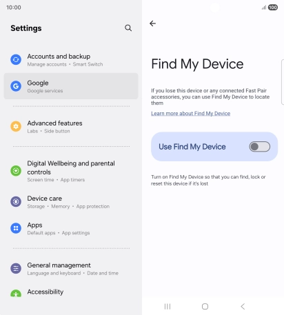 Press the indicator next to "Use Find My Device" to turn on the function.