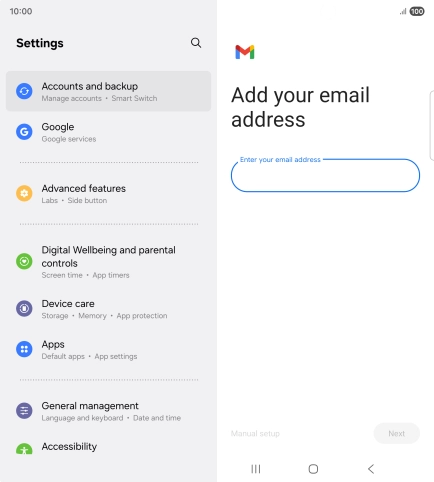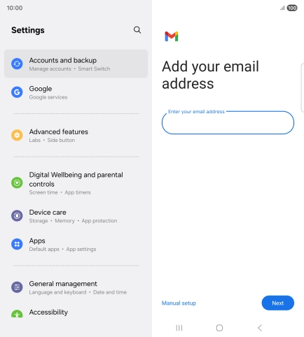 If this screen is displayed, you email account has been recognised and set up automatically. Follow the instructions on the screen to key in more information and finish setting up your phone.