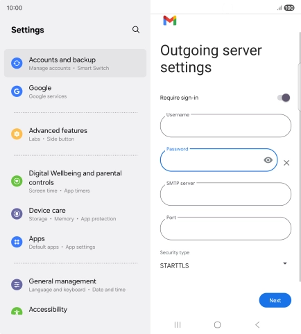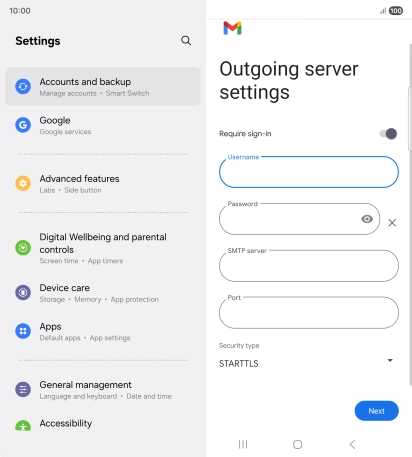 Press the field below "Username" and key in the username for your email the email provider's outgoing server.